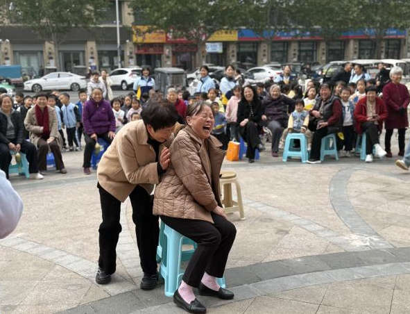 活动在孩子们清脆的问候声中拉开帷幕。首先进行的是“童心表演”,一首首敬老歌曲,一支支孝老舞蹈在大家面前展示,现场氛围温馨有趣。紧接着的游戏环节将气氛推向高潮:“趣味乒乓球传递”游戏。老人们与孩子们结对组成“祖孙搭档”,用小小的球拍小心翼翼地托起乒乓球,协同合作,迈向终点。现场既有紧张的角逐,更多的是此起彼伏的加油声和欢笑声。年迈的步伐与稚嫩的身影相互映衬,传递的不仅是乒乓球,更是两代人之间浓浓的温情与默契;“欢乐抢凳子”游戏。伴随着欢快的音乐,老人们仿佛回到了童年,与孩子们一起围着凳子转圈,音乐骤停时,大家或敏捷或俏皮地争抢座位。每当有长者“险中求胜”,现场都会爆发出热烈的掌声和喝彩。这个经典游戏不仅锻炼了反应能力,更消除了年龄的隔阂,让老少情感在互动中深度融合。