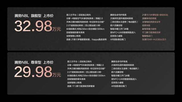 29.98万元-32.98万元!大六座安全豪华SUV腾势N8L正式上市