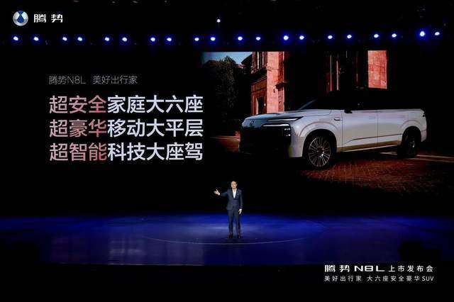 腾势总经理李慧用三句话总结N8L,就是:超安全家庭大六座、超豪华移动大平层、超智能科技大座驾,以硬核技术实力重塑家庭大六座豪华SUV新标准,与每个热爱生活的家庭一起奔赴美好。