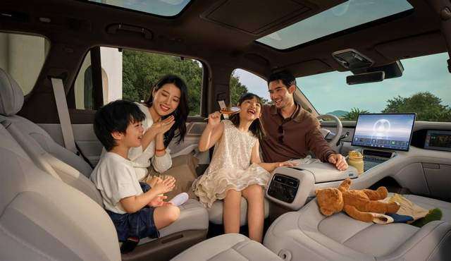 座舱内,11L超大智能冷暖三开门冰箱、17.3英寸娱乐吸顶屏与20扬声器帝瓦雷音响+杜比全景声+QQ音乐Hi-Res无损品质音源组合,结合采用十层材料结构双发泡填充的“云栖座椅”,以“冰箱彩电大沙发”打造家的舒适便利;此外,腾势N8L还获得了中汽中心“零甲醛”认证,搭配四温区双层流空调系统、定眩智能防晕车系统,共同打造沉浸式“移动客厅”。同时焕新更精致的UI界面,并首发推出腾势IP专属动态主题,情绪价值满满,让人机交互兼具智慧与情感温度。