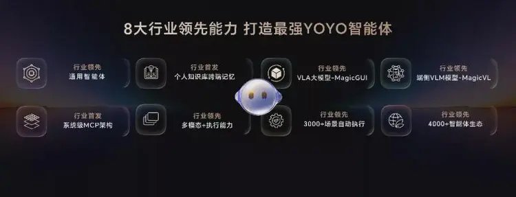 除了荣耀自研的UI Agent能力,YOYO更搭载行业首发的系统级MCP架构,深度打通系统底层超过80%的高频场景,接入超过4000个生态MCP和生态智能体,实现3000个场景的自动执行,堪称行业最强通用智能体。