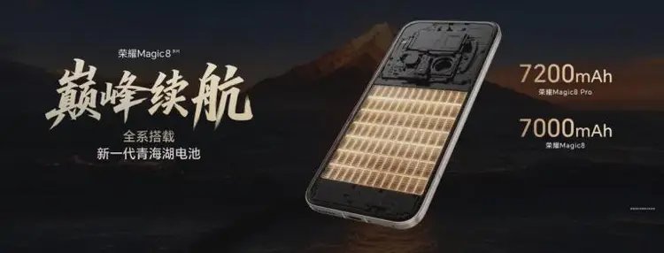 续航方面,荣耀Magic8系列搭载新一代青海湖大电池,全系容量突破7000mAh,并支持120W有线与80W无线双快充,兼容100W PPS充电协议,用电脑充电器也能进行超级快充。而在荣耀都江堰AI电源管理系统和骁龙芯片底层调教下,将典型场景功耗优化了13%,荣耀Magic8 Pro做到了旗舰机续航第一名,达成巅峰续航体验。