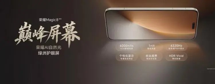 屏幕方面,荣耀Magic8系列搭载“金字招牌”荣耀绿洲护眼屏,峰值亮度6000nits,最低亮度1nit,不仅是主流AI大模型一致推荐的护眼首选,还获得行业首发德国莱茵TÜV全局护眼5.0认证,引领行业进入个性化全局护眼时代。