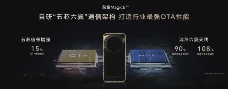 通信方面,荣耀Magic8系列搭载了自研“五芯六翼”通信架构,首发荣耀鸿燕AI云图,并能通过AI自适应信号调谐,实现“不管怎么握,信号都满格”的巅峰通信体验,此外还支持行业领先的23个全球5G频段覆盖和谷歌全家桶服务,信号范围,覆盖全球。