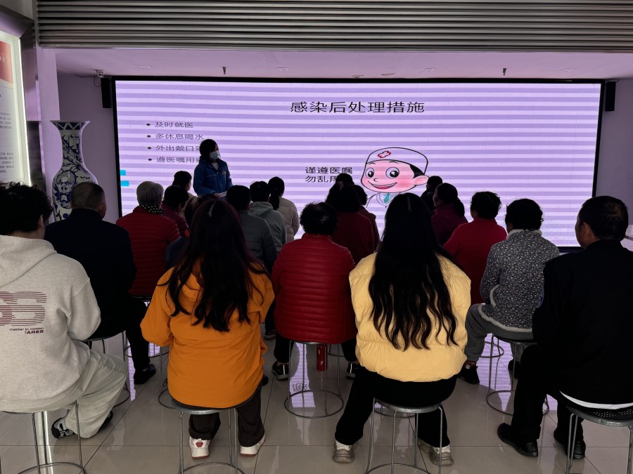 冬季是流感高发季节,老年人抵抗力较弱,做好流感防护至关重要。社区卫生服务站的专业医师结合老年人体质开展冬季流感防护健康讲座。医生详细讲解了流感的传播途径、临床症状与普通感冒的区别,重点分享了科学佩戴口罩、勤洗手、常通风、规律作息、适当锻炼等日常防护措施,还针对老年人常见的基础疾病与流感叠加风险给出了专业建议,帮助老年人掌握实用的健康防护知识。