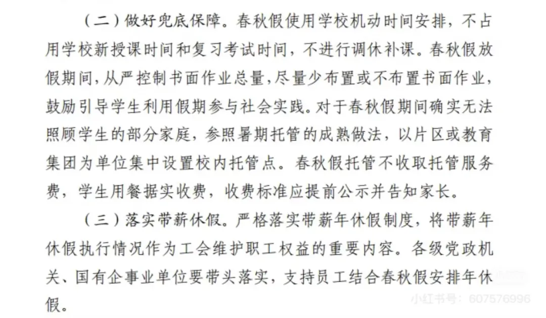 春秋假不会影响孩子学习;家长没假期学校提供托管;