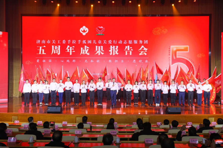 整场报告会以“天下无孤——五周年致敬与启航”为主题,通过丰富的节目展演、真挚的成果分享与各地志愿团队的联动交流,全面回顾五年关爱历程,凝聚全国志愿力量,为孤困儿童关爱事业注入新动能。参加会议的还有市文明办、市委社会工作部、济南日报报业集团、市妇联、市科协、市残联、市教育局、市民政局、市卫生健康委、济南红十字会等单位的分管负责同志;各区县关工委和相关部门、志愿服务团分团、部分捐赠企业和优秀志愿者的代表;来自全国50个城市的志愿服务团的代表。