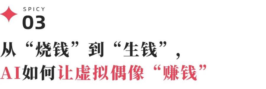 AI助力下,制作成本的降低与效率的提升,从根本上重构了虚拟偶像的商业模式,使其从过去难以盈利的“吞金兽”,变成了一个可能产生正向循环的生意。