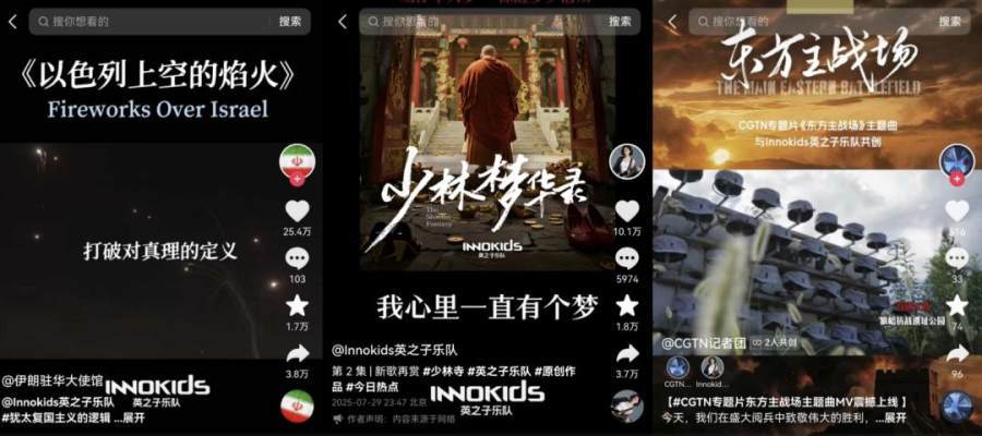 “早点谈统一确实从容又游刃有余,‘台独’的后果只能是连滚带爬去”,由Innokids英之子乐队重新填词二创后的女音吉他版本,更是引得官媒自发传播,中国新闻网、中国台湾网、新华社、人民日报等官媒纷纷下场转发。