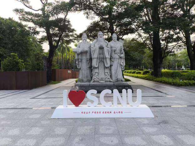 此次探访的华师石牌校区(主校区),位于广州市天河区中山大道西55号,地铁3号线华师站直达,与暨大石牌校区相邻,周边高校云集、学术氛围浓厚。走进校园,最先被吸引的是满眼的绿意:参天古树环绕着红砖教学楼,“孔子像”矗立在校园中心,往来的学生或抱着专业书籍奔赴教室,或在草坪上讨论教学方案,一举一动间都透着师范院校特有的沉稳与朝气。最让我印象深刻的是,校园里随处可见“为人师表”的标语与校友捐赠的教育主题雕塑,无声地传递着这所学校的育人初心。