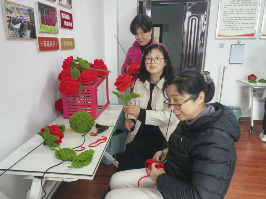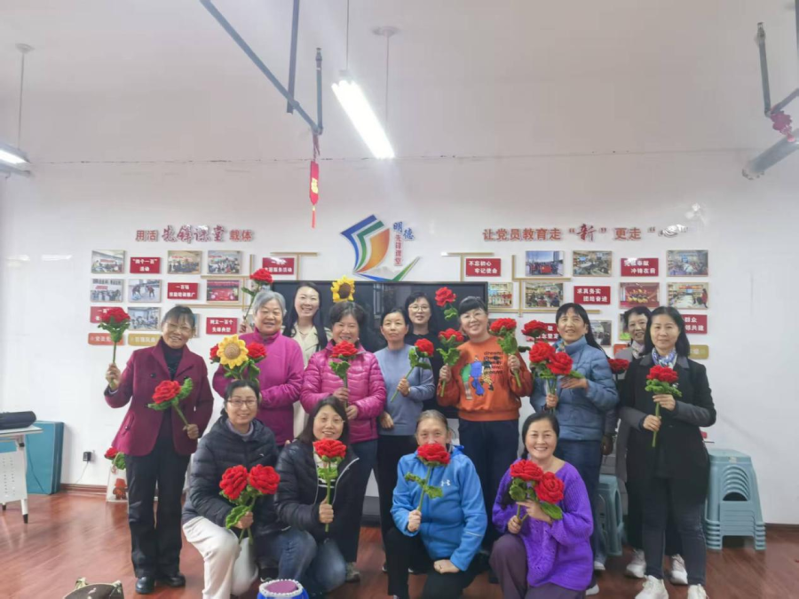 龙子湖街道办事处明德街社区钩编课绽放“向日葵”,玫瑰作品展温情