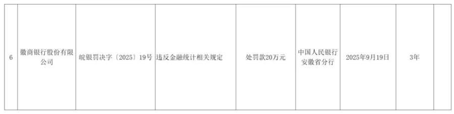 对于徽商银行而言,因违法违规行为被处罚已是屡见不鲜。在这张大额罚单公布前不久,徽商银行就曾在9月30日因违反金融统计相关规定,被中国人民银行安徽省分行处以20万元罚款。