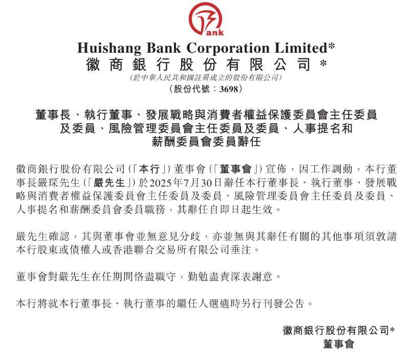 目前,徽商银行行长、执行董事孔庆龙代为履行战略委员会主任委员职责,非执行董事卢浩代为履行风险委员会主任委员职责,截至发稿暂未有与该行新任董事长相关的消息传出。