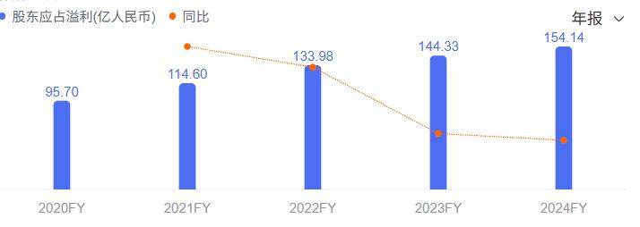 2021年至2023年,徽商银行的归母净利润分别为114.60亿元、133.98亿元和144.33亿元,增速分别为19.75%、16.91%和7.73%;其2024年的归母净利润同比增长6.18%至159.17亿元,增速进一步降低。