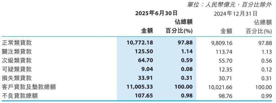 从资产质量的角度出发,徽商银行截至6月末的不良贷款总额余额为107.65亿元,较2024年末增长8.89亿元;不良贷款率仅降低0.01个百分点至0.98%,依旧面临着不良贷款量、率控制的双重挑战。