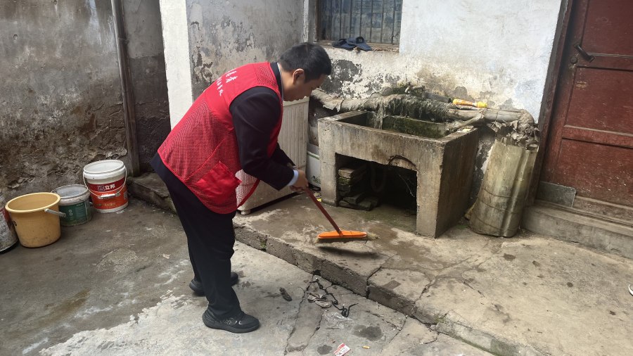 服务当天,志愿者们按提前梳理的台账开始行动,带着工具包和热乎饭菜穿梭在辖区楼栋间。到了陈叔叔家,大家立刻分工行动:负责打扫院子的志愿者率先拿起扫帚,从墙角的枯枝落叶,到院中的杂物,逐一清扫,原本杂乱的院子渐渐变得干净整洁。另一边,理发志愿者俯身为陈叔叔围上围布,按照“好打理、显精神”的需求修剪发型,剪完还帮他扫去颈间碎发;健康志愿者拿出血压仪,一边测量一边叮嘱“天冷注意保暖,血压高别猛起身”;同时链接辖区爱心商户,由志愿者护送至困难群体家中,将温热饭菜摆上桌,看着陈叔叔吃上热饭才放心。