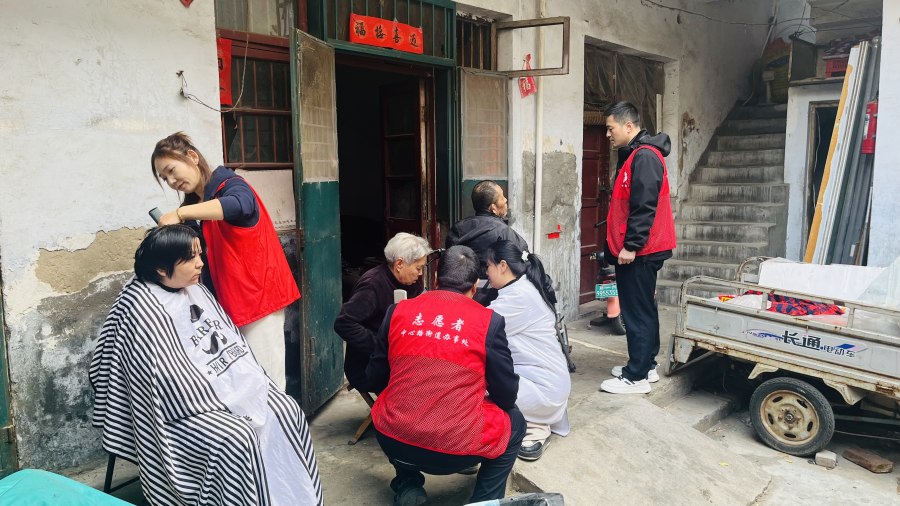 活动前期,“同同”便民服务队联合社区工作人员开展“敲门走访”,逐户核实困难群体的饮食禁忌、理发偏好、健康状况等细节,用细致摸排确保服务精准对接每一户需求。