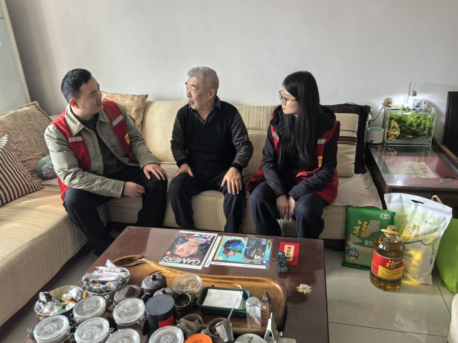 活动伊始,街道党员志愿服务队率先开展入户走访慰问,走进辖区2户高龄、困难老人家中。志愿者们与老人促膝长谈,详细询问身体状况及生活中遇到的困难,耐心倾听老人的心声,叮嘱他们天气转凉要保重身体;同时送上精心准备的米、面、油等生活物资,将关怀与温暖实实在在送到老人手中,让他们在这个特殊的节日里感受到来自街道与社区的深切关爱。