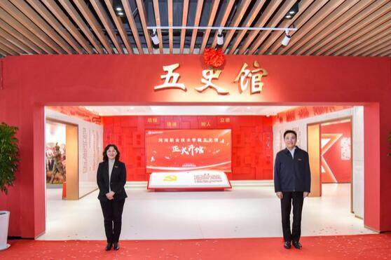 10月29日上午,河南职院在图书馆举行“五史馆”开馆仪式。校党委书记厉励,校党委副书记、校长夏新颜共同为“五史馆”揭牌。在郑校领导、各单位党政负责人、师生代表及学校马院共建结对院校思政课教师代表一同见证开馆。校党委副书记、工会主席田华主持开馆仪式。