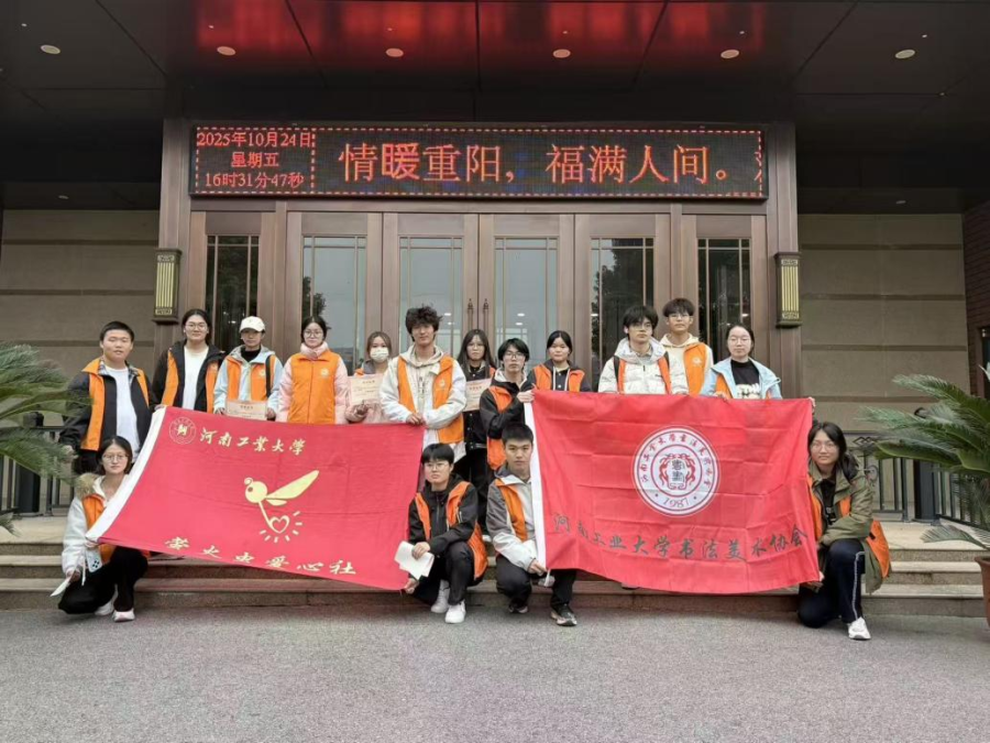2025年10月23日,河南工业大学萤火虫爱心社和书法美术协会的志愿者们怀揣着满满的热情与爱心,走进了郑州祥和瑞乐养老院,开展了一场以“信笺传暖意,学子敬耆老”为主题的特别活动。他们用青春的活力与真诚的陪伴,为老人们带去了欢声笑语,也让寻常的一天变得格外温馨而有意义。