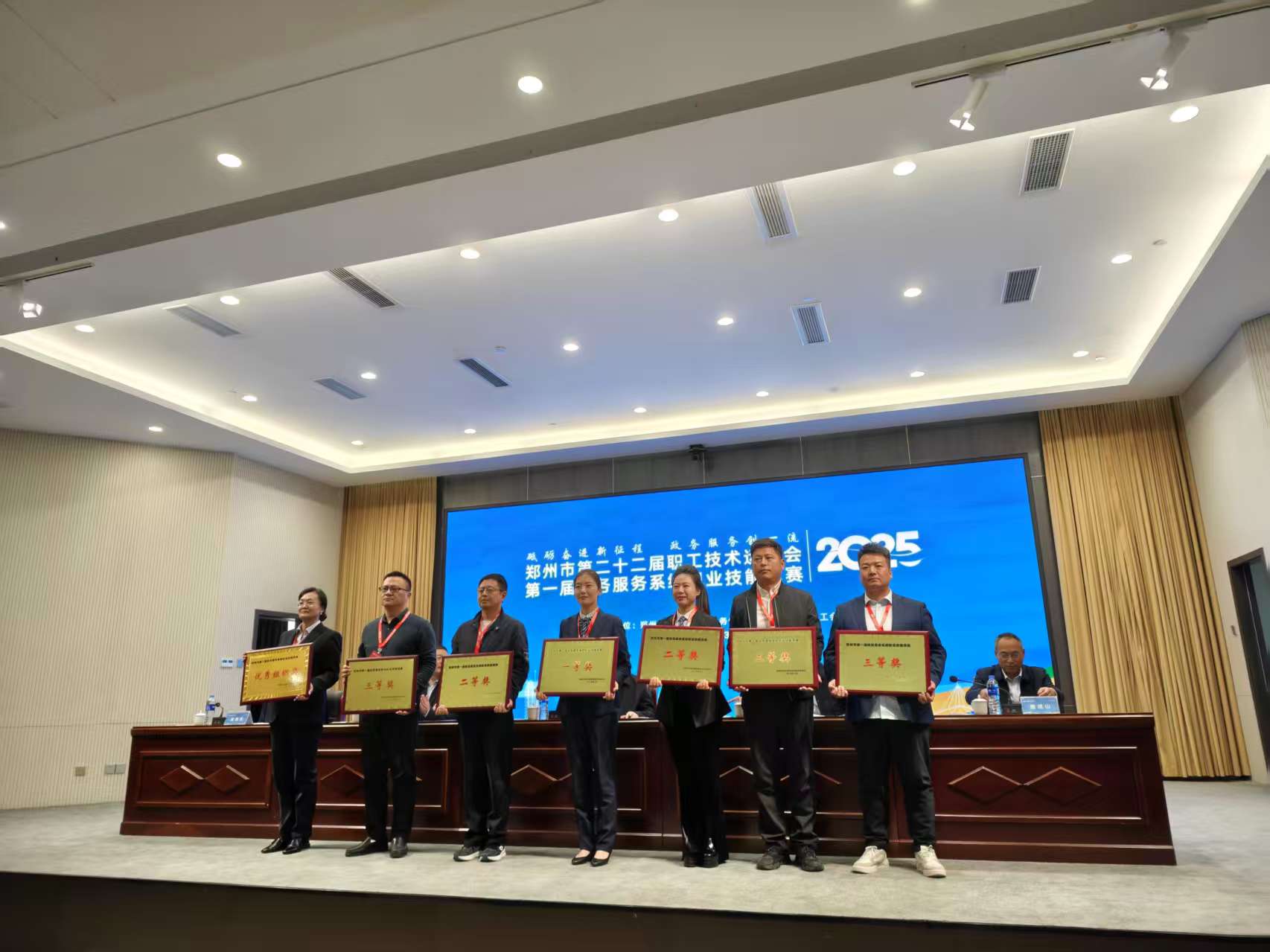 近日,郑州市第一届政务服务系统职业技能竞赛圆满收官。郑州经开区政务服务局代表队凭借扎实的业务功底、娴熟的操作技能与默契的团队协作,从全市16 个政务服务中心,48 名一线业务骨干中脱颖而出,荣获集体竞赛三等奖,2名工作人员获得个人优秀奖。