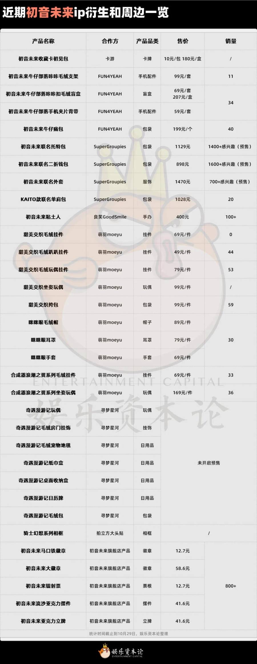 根据小娱目前统计的表格来看,初音未来IP衍生品还是存在同质化问题。这样的产品堆积出售很难拉动整体的周边销量。
