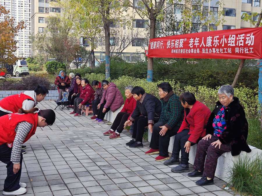 为丰富辖区老年人精神文化生活,提升健康养生意识,10月31日,在郑州航空港区社会事业局和张庄办事处指导下,张庄社工站在绿景华庭小区开展“健康同行,快乐相聚”老年人康乐小组活动第二节,吸引15名老年组员踊跃参与,现场氛围温馨热闹。