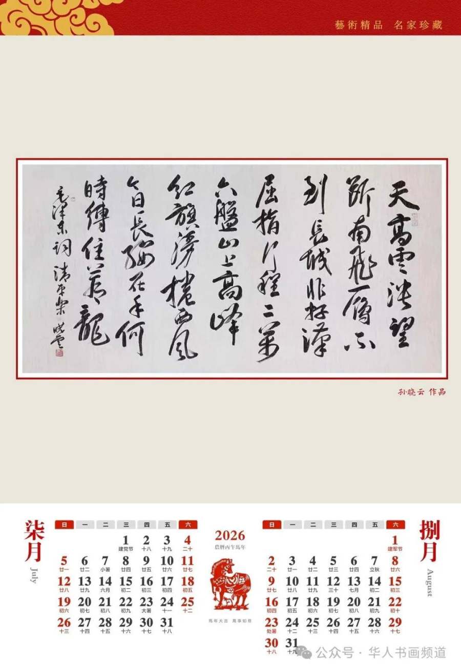 4. 无须作品原件,提交作品高清电子版照片即可。入选作品将由大赛组委会统一印刷出版,数量及工本费个人自理。大赛组委会对年历书画作品最终评定。添加关注华人书画频道公众号大赛秘书处:廖秘书
