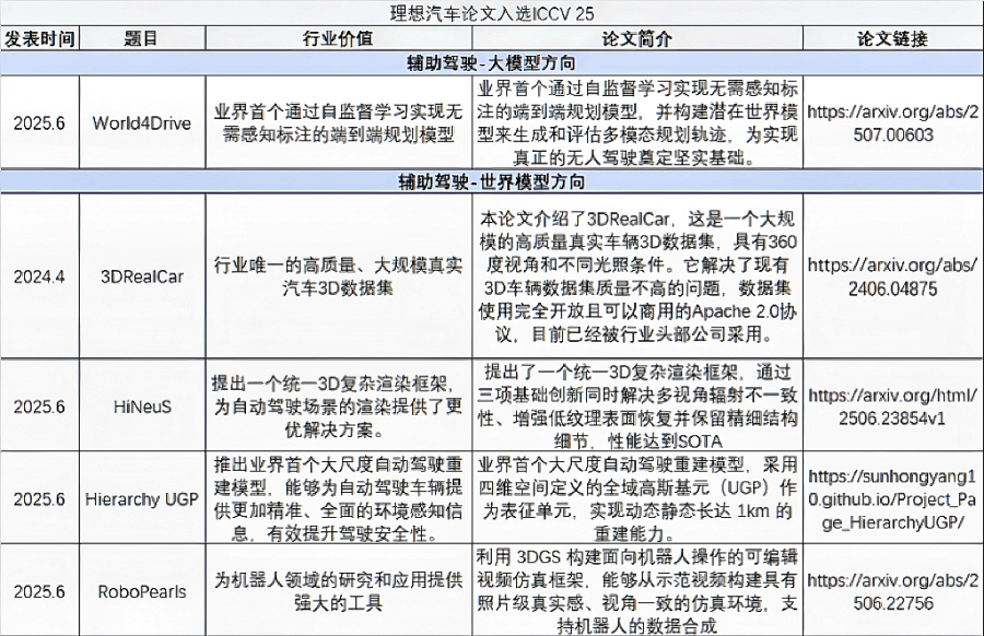 除了这次分享,仅在ICCV 2025上,理想自动驾驶团队就有5篇重磅论文入选。而近三年,理想汽车围绕端到端、世界模型、VLA模型等前沿技术,在多个顶级学术会议发表了近50篇论文。不仅如此,理想汽车将辅助驾驶部分代码和数据库开源,获得超过3200名开发者的收藏或调用。