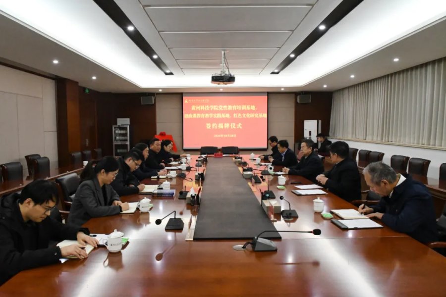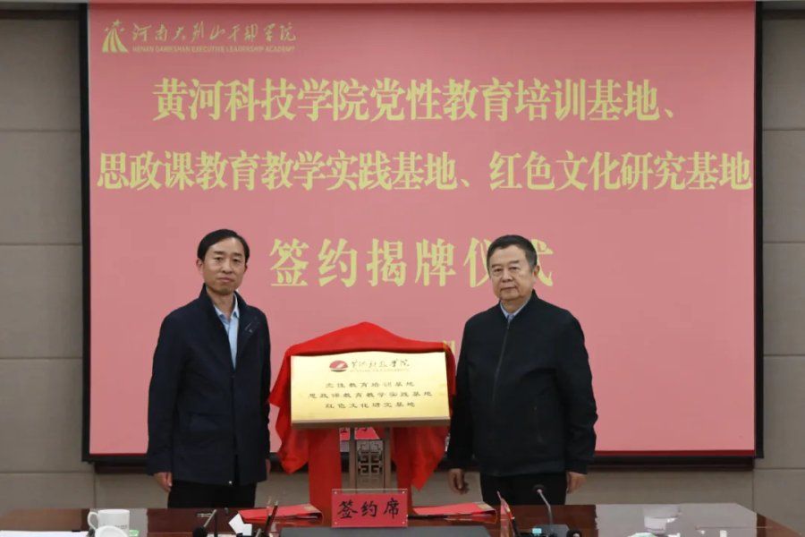 为更好地开展党性教育培训、推进思政课教育教学和红色文化研究,经与河南大别山干部学院充分协商,10月28日,黄河科技学院“党性教育培训基地”“思政课教育教学实践基地”“红色文化研究基地”合作签约暨揭牌仪式在河南大别山干部学院举行。
