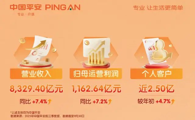 中国平安的综合实力位于行业前列。今年前三季度,其营业收入8329.40亿元,归母运营利润1162.64亿元,均实现稳健增长,收入还在A股五大上市险企中位居第一。