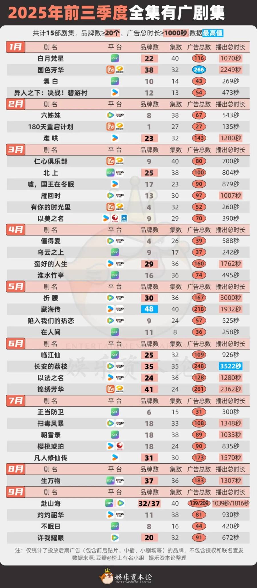与此同时,男频题材带来更多功能性与科技类品牌回流,女性向剧仍是日化与食品的稳定阵地,平台也尝试在IP衍生、剧场打包、电商联动上寻找新的增长点。 (《藏海传》登顶招商王座,难掩大盘跌跌不休|2025H1剧集商务总结)