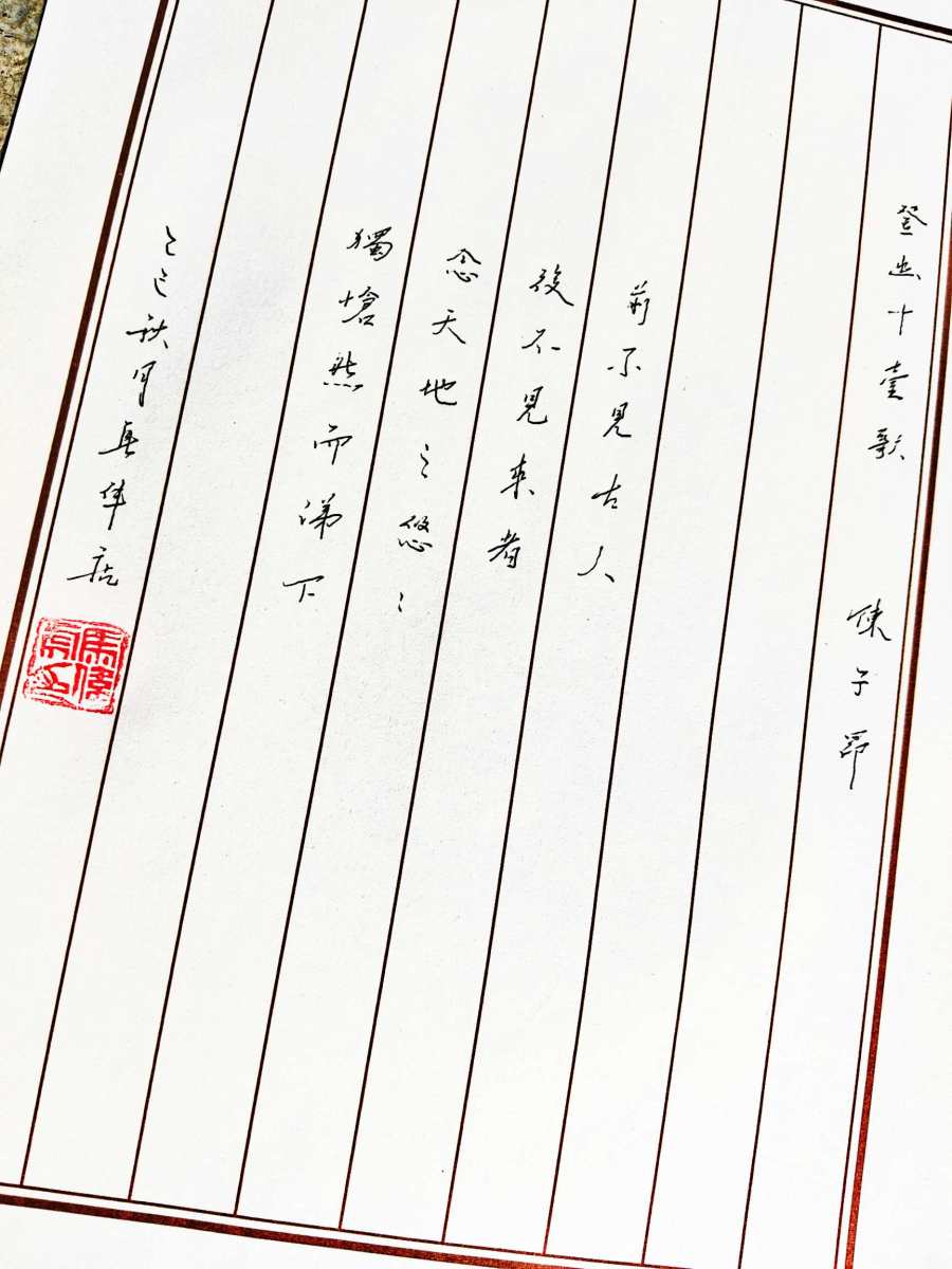 在《登鹳雀楼》《登幽州台歌》等经典诗词的书写中,马伟虎将个人情感与历史意境完美融合。他的笔触时而激昂,时而舒缓,仿佛在与古人对话,让观者在欣赏书法的同时,也能感受到诗词的韵味与力量。