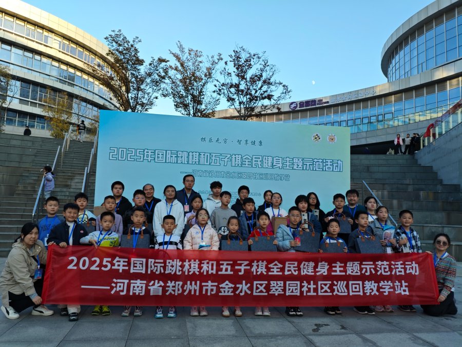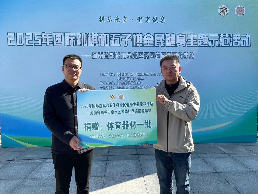 活动现场还融入“2025年国际跳棋和五子棋全民健身主题示范活动——河南省郑州市金水区丰庆路街道翠园社区巡回教学站”元素,举办体育器材捐赠仪式,向翠园社区捐赠棋具20套、手册100本及若干体育器材,为社区棋类运动开展提供坚实物资支持,助力棋类运动在基层社区进一步普及,推动全民健身与智力运动深度融合。