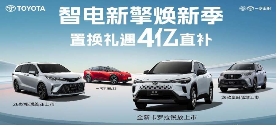不止如此,为回馈用户厚爱,一汽丰田年末收官礼遇再升级,以4亿元厂家直补正式开启“智电新擎焕新季”。11月1日-12月31日,皇冠陆放、格瑞维亚、普拉多等重磅车型可享至高1.3万元的车龄增值礼;购全新bZ5更有限时购车福利赠送,此外“焕新季”还准备了电商礼、老友礼、服务礼等多重大礼,以极致诚意为用户创造最佳购车时机。