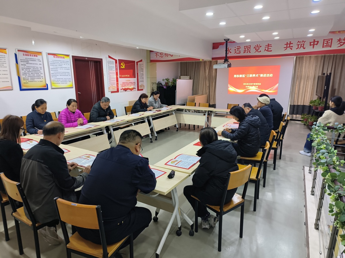 日前,郑东新区城市管理局养犬办组织如意湖办事处城管办、如意湖执法中队、绿地社区及社区群众代表等人员,开展了“三联养犬”推进活动。