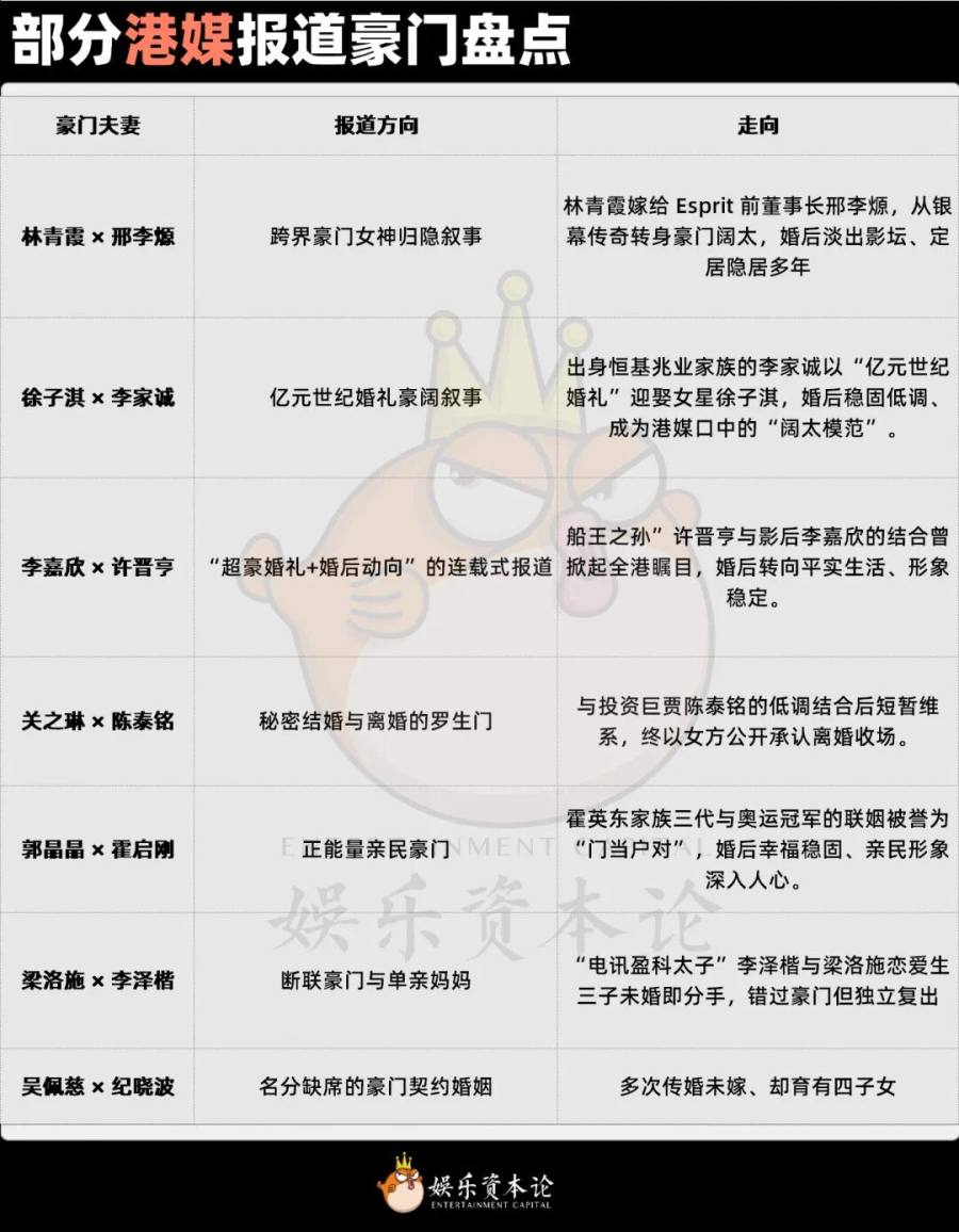 要理解当下内地社交舆论对“豪门婚姻”的讨论,得先追溯到港媒的黄金年代。比起内地,中国香港的八卦工业早了足足三十年,几乎奠定了大众对于“豪门婚姻”的最初想象。