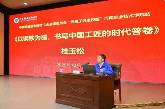 近日,河南职业技术学院在学校音乐厅举行“劳模工匠进校园”暨“匠心大讲堂”报告会。全国劳动模范、中国一重集团有限公司重型装备事业部桂玉松,全国劳动模范、方大特钢科技股份有限公司甘荣刚,分别以《以钢铁为墨,书写中国工匠的时代答卷》《让劳模精神在平凡的岗位上绽放精彩》为题做专题报告。两位全国劳动模范结合自身成长经历与技术攻关实践,用质朴的语言和真挚的情感,讲述了感人至深的劳模故事,生动诠释了“执着专注、精益求精、一丝不苟、追求卓越”的工匠精神,深深感染了在场师生,引发热议。