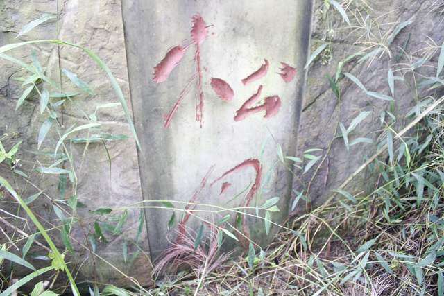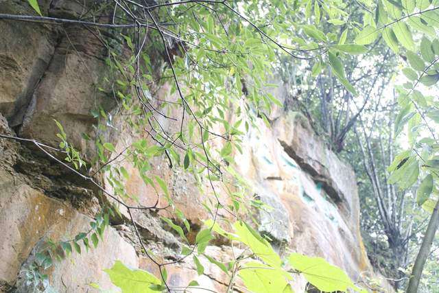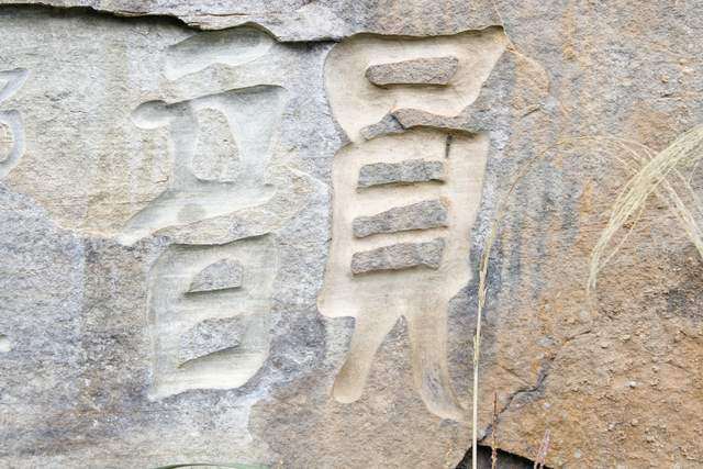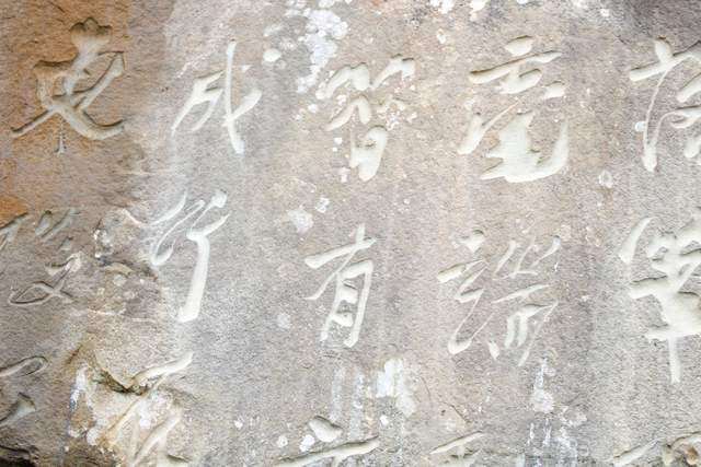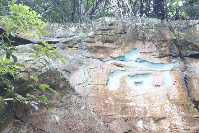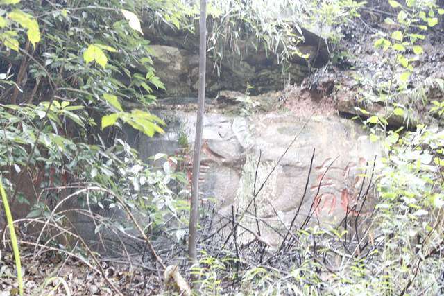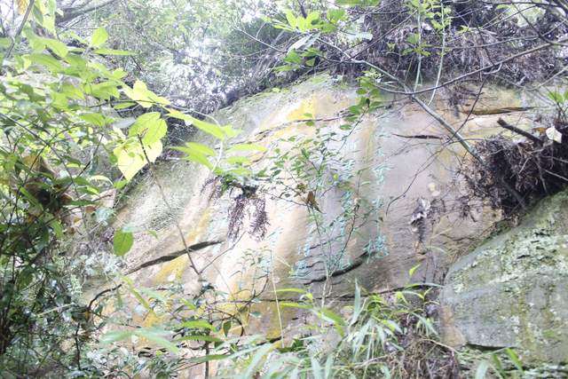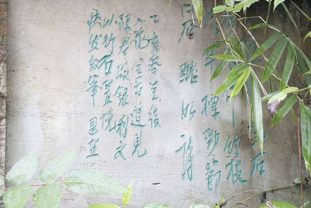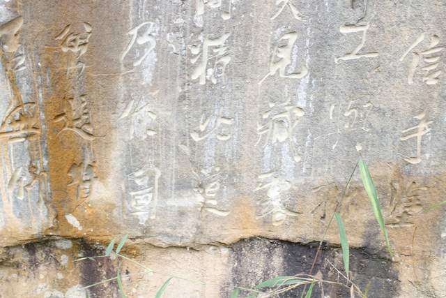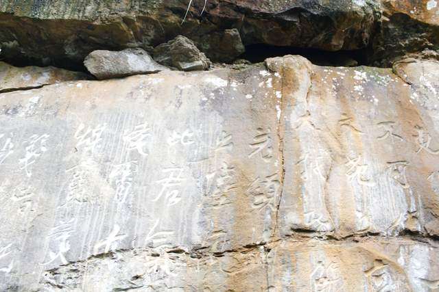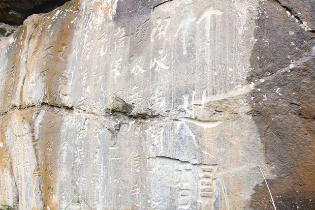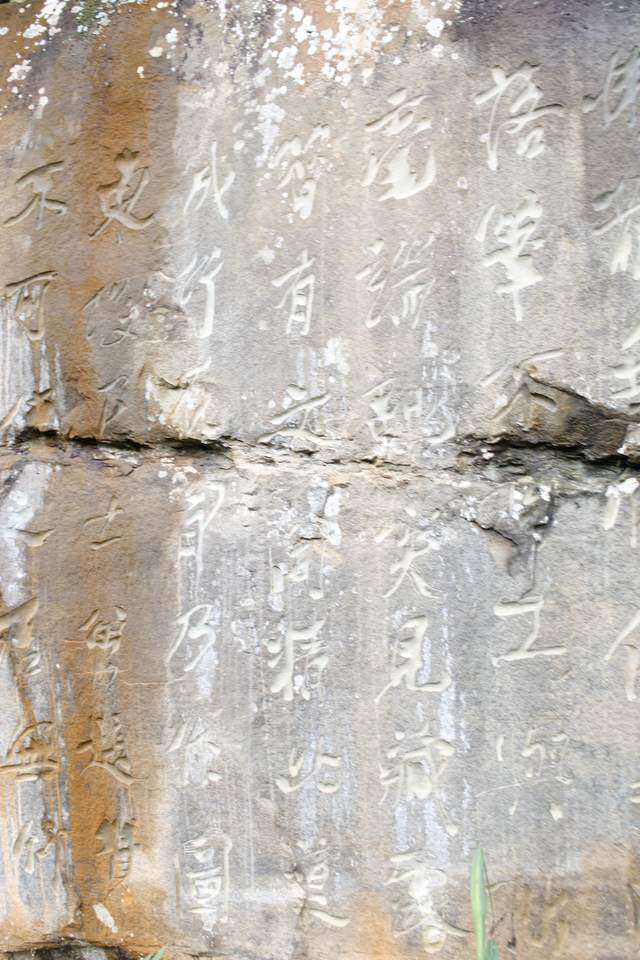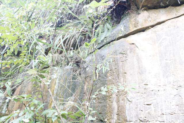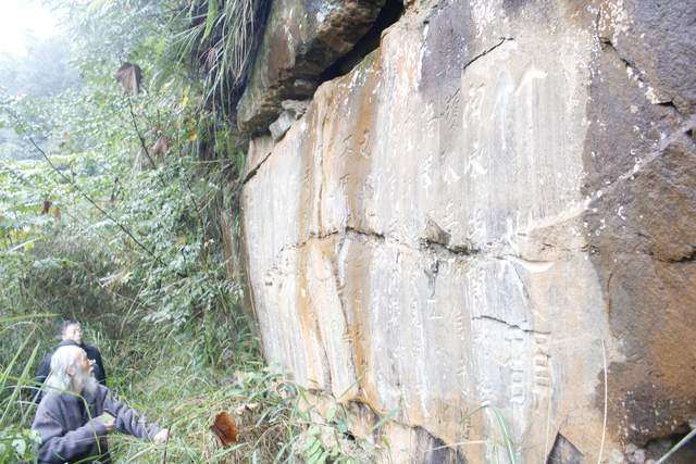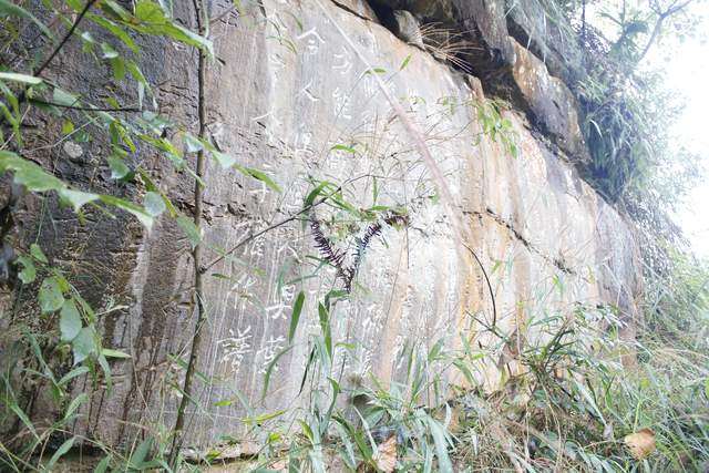 很多字隐没在山林之间,山路湿滑,得见不易。