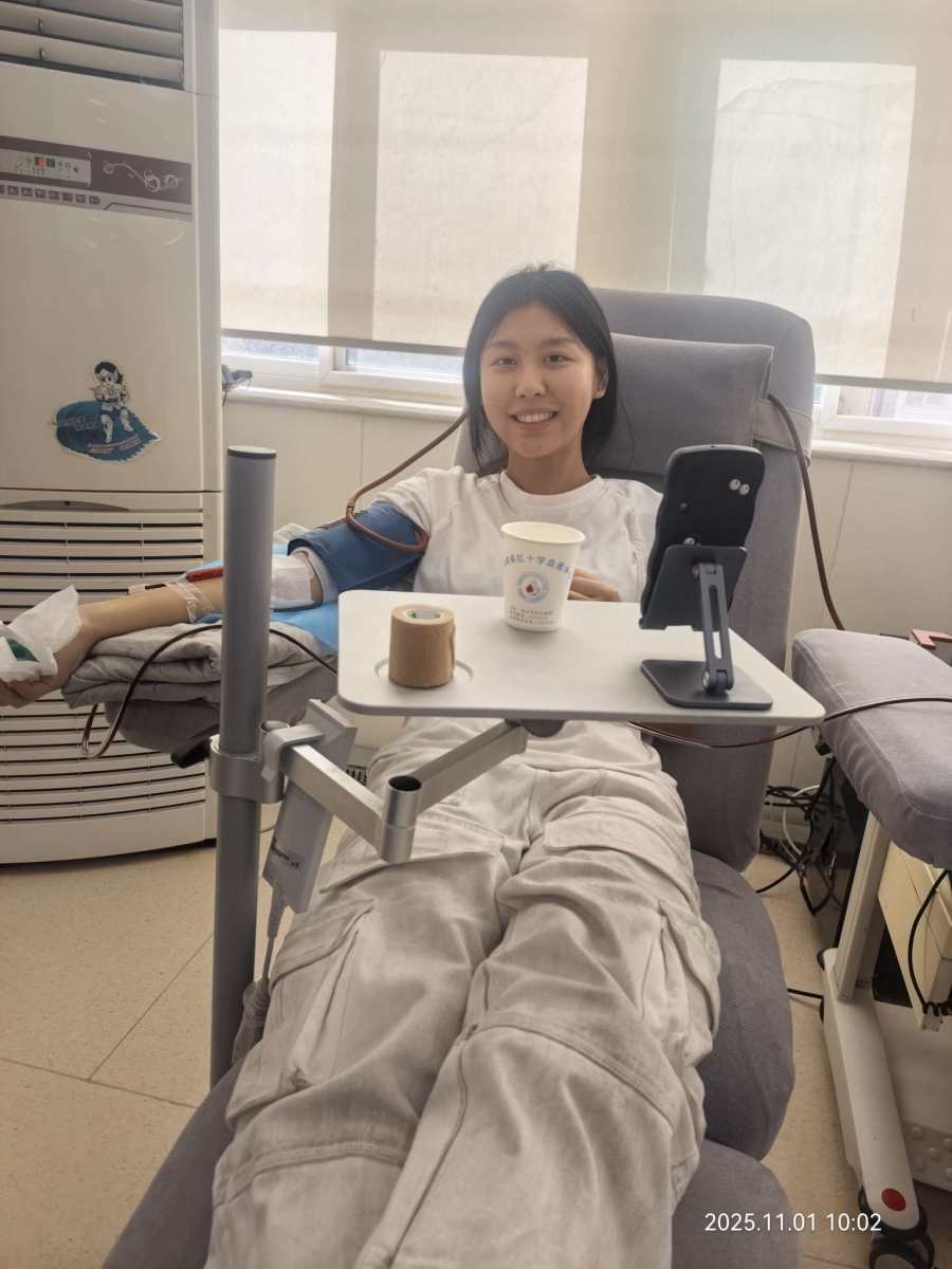 那天清晨,当刘轩妍随父母走进血液中心时,她被眼前的画面深深打动。大厅里满是穿着红马甲的志愿者,他们挽起袖子,神情平静而坚定,仿佛这只是生活中再普通不过的一部分。这种无声的默契让刘轩妍第一次直观地感受到什么是“众志成城”。她学着父母的样子坐上献血椅,看着鲜红的血液缓缓流入采血袋。那一刻,她没有紧张,反而有一种前所未有的踏实。这袋血将流向某个陌生的生命,也许是一个亟待手术的孩子,也许是一位与病魔抗争的老人。而她的成年,也从这一天起,真正与社会的脉搏联结在了一起。