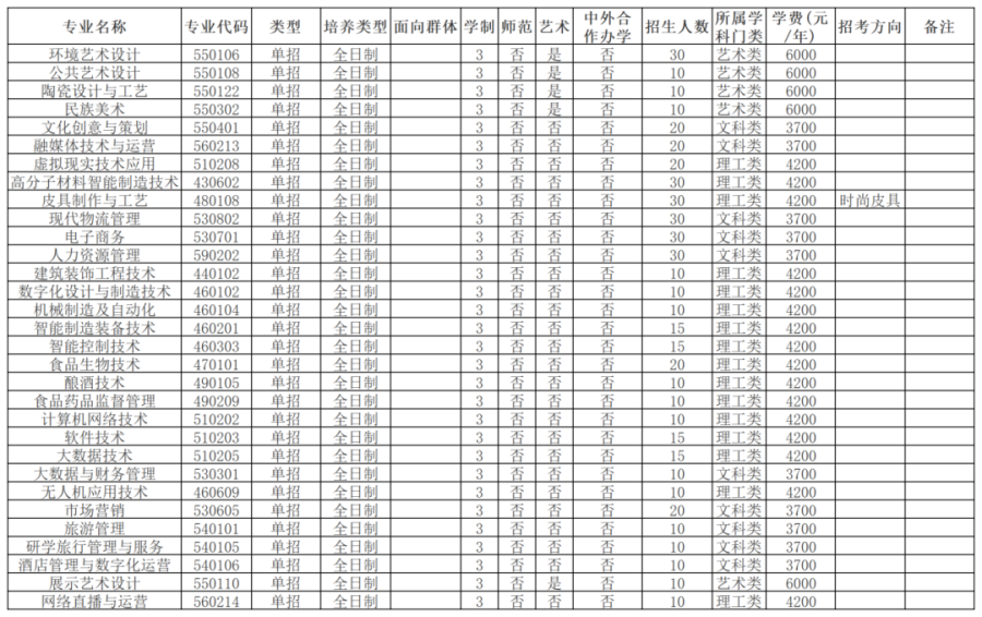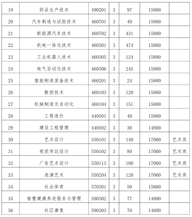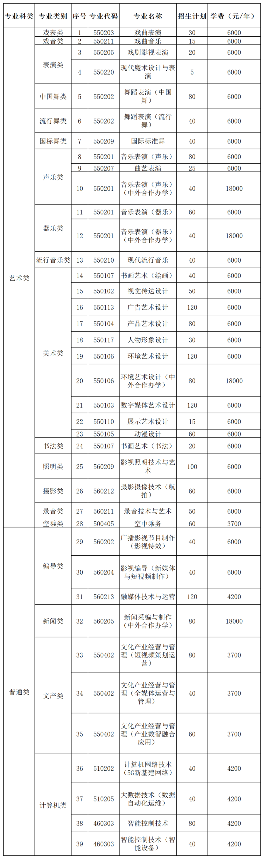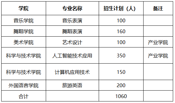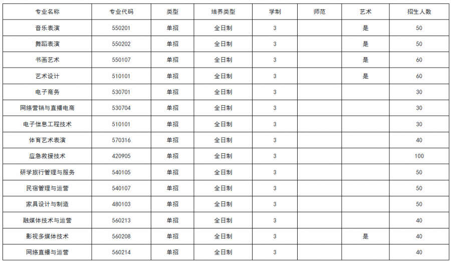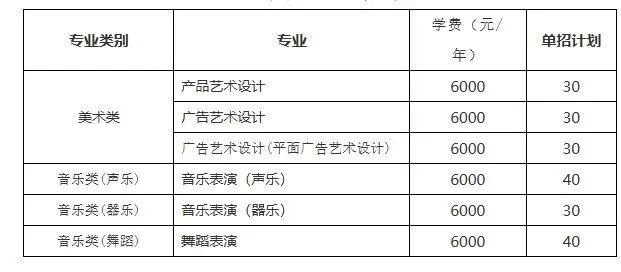 艺术类专业招生计划