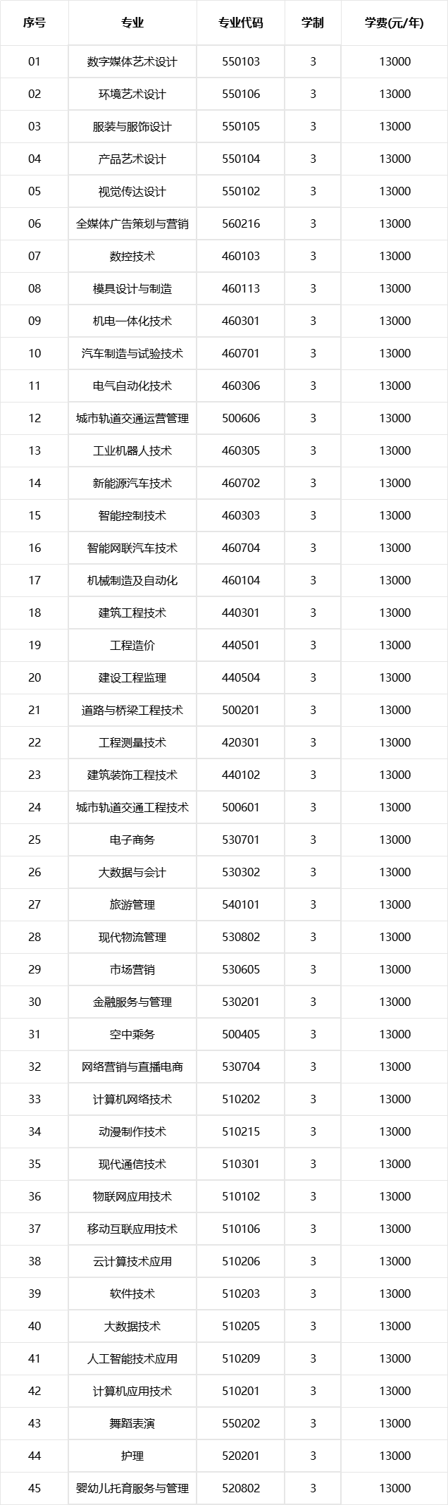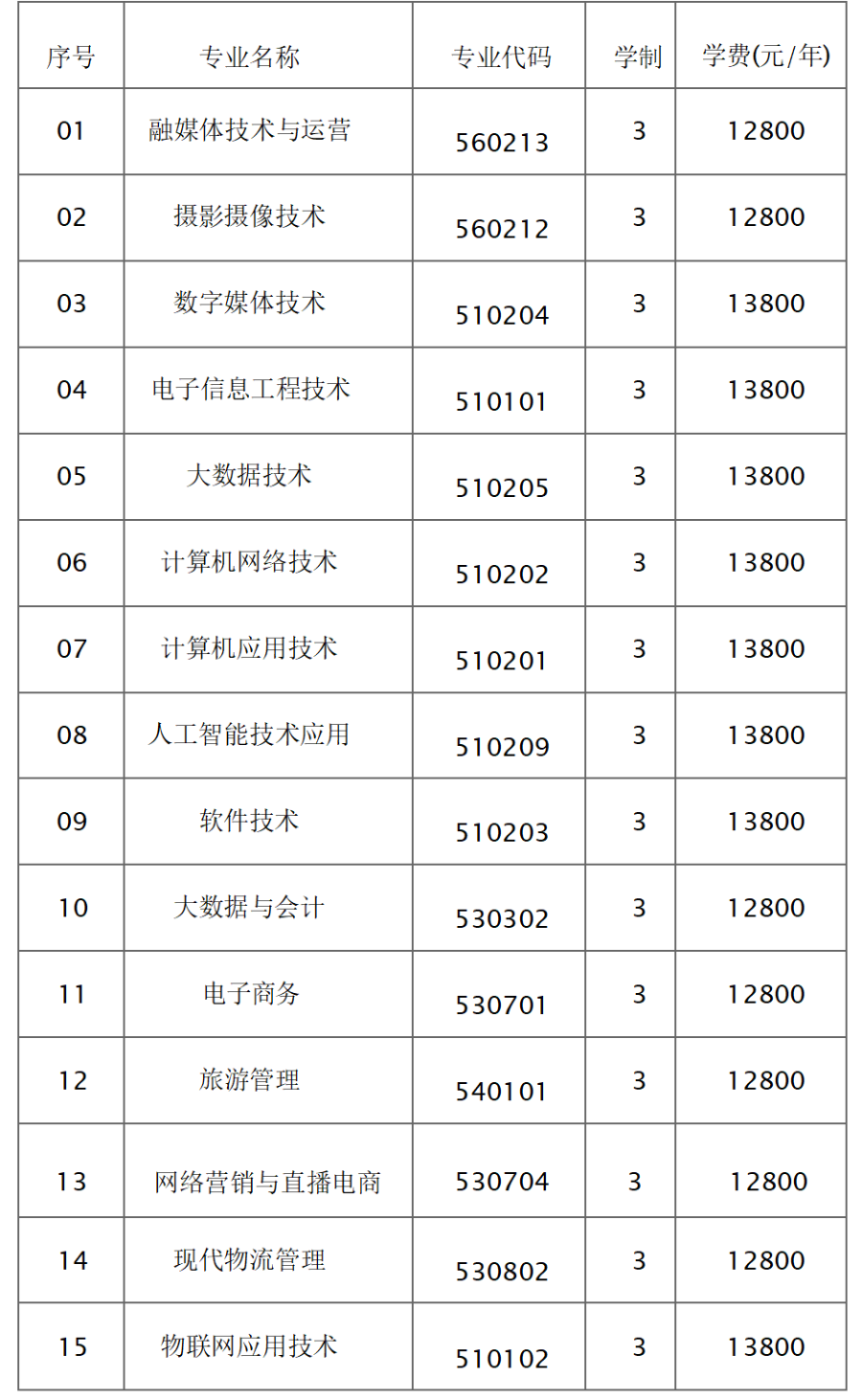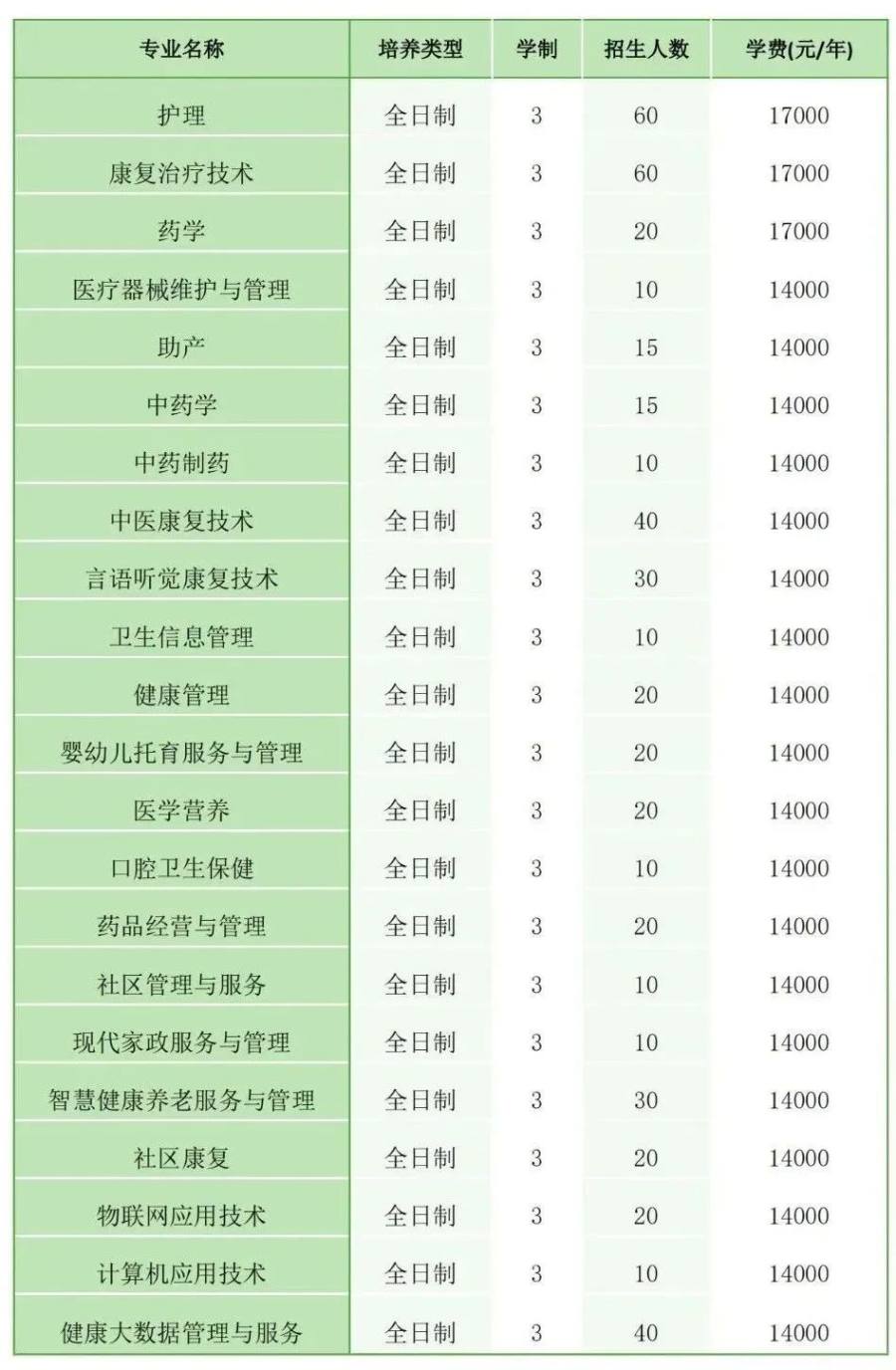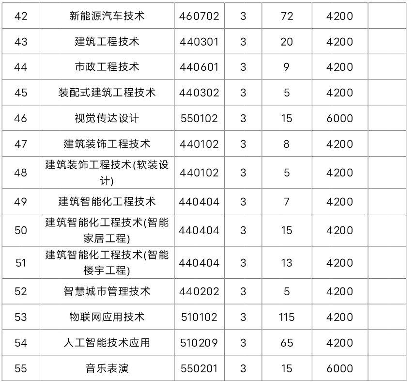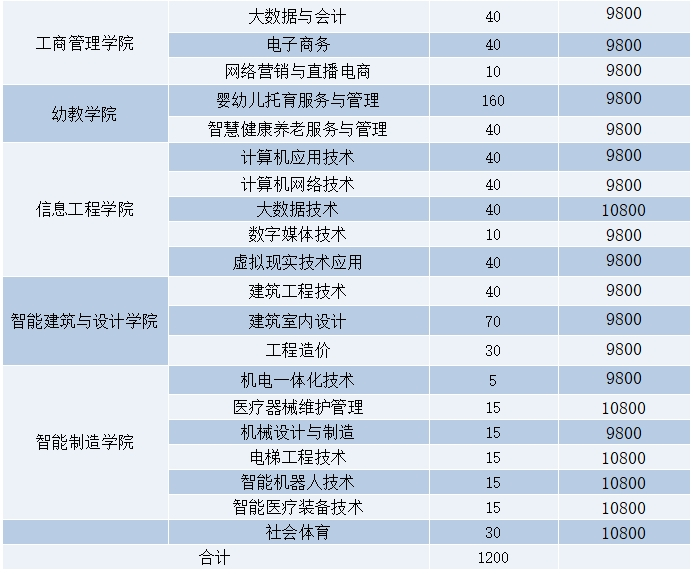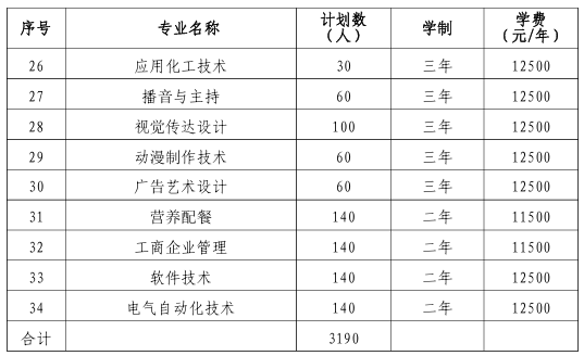 面向中职生考生招生的专业有:电力系统自动化技术(不招收色弱、色盲考生)、风力发电工程技术(不招收色弱、色盲考生)、机电一体化技术、物联网应用技术、现代物流管理等5个现代学徒制专业。