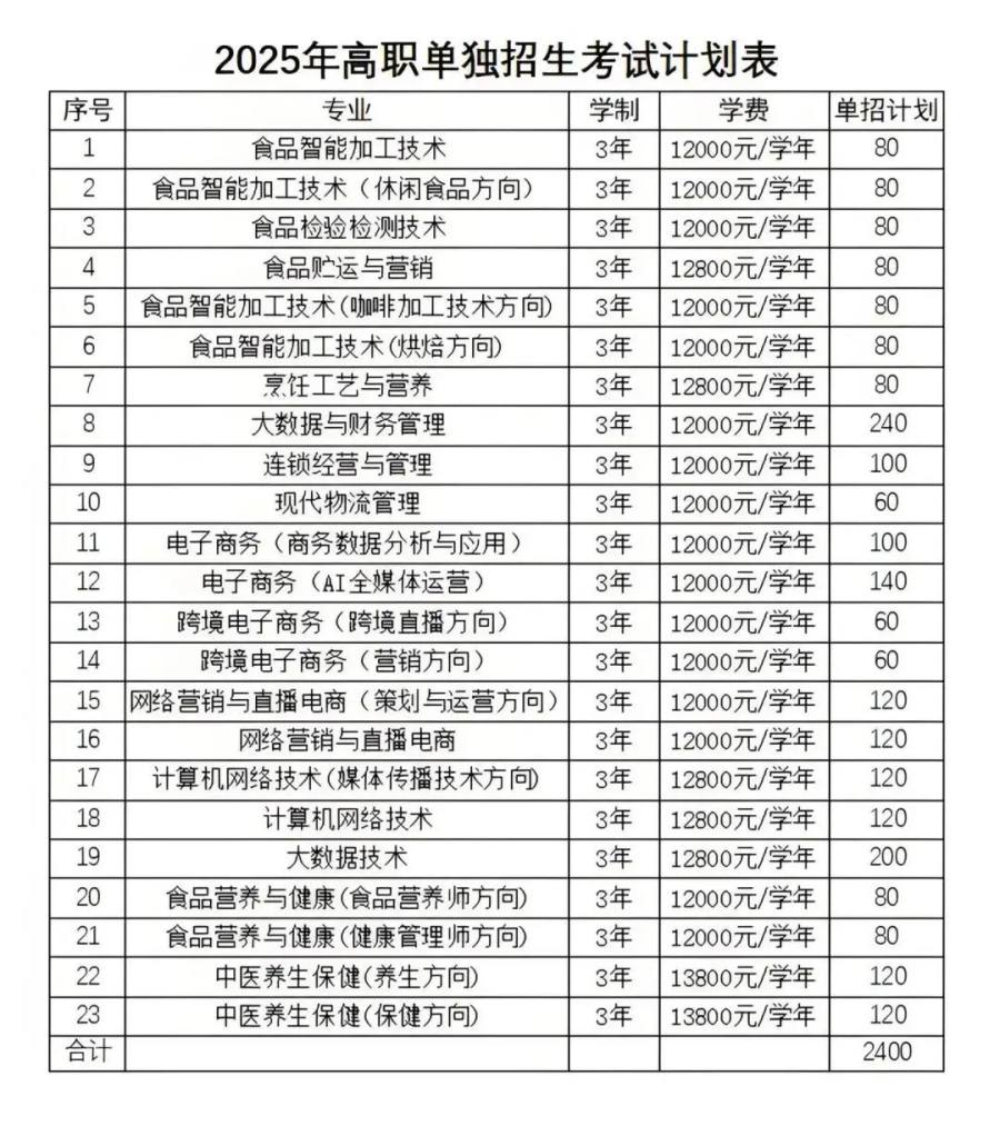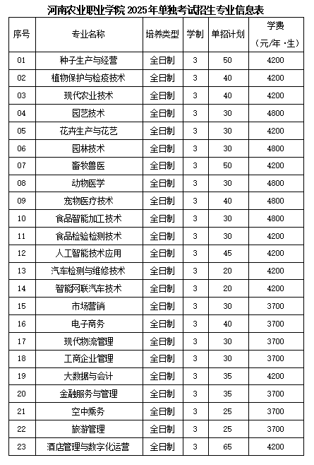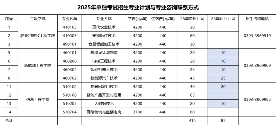 2025年河南高职单招招生计划来了!共110所高校招生专业、人数及各专业学费等均已公布,供大家参考报考。