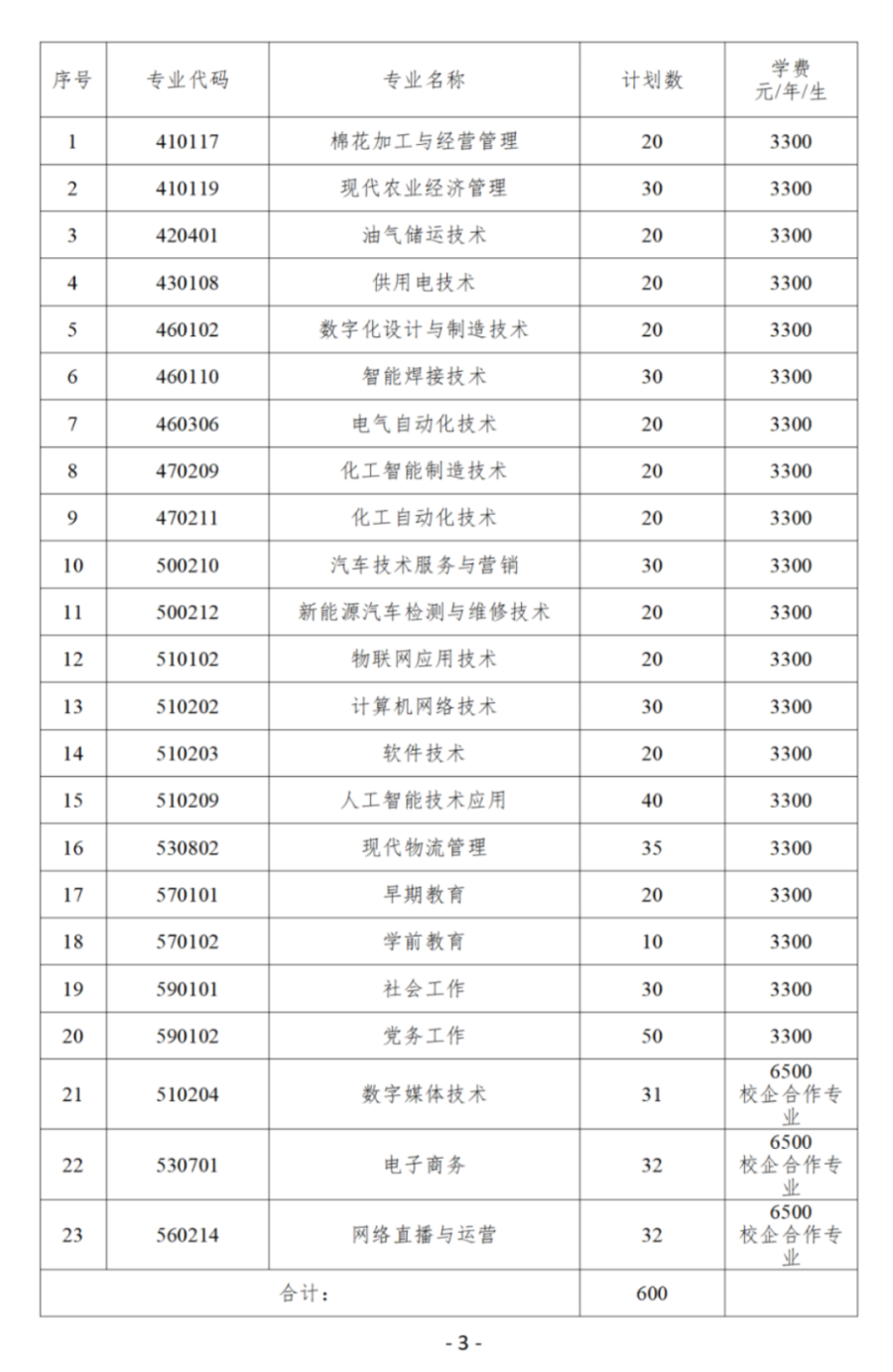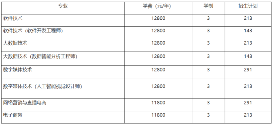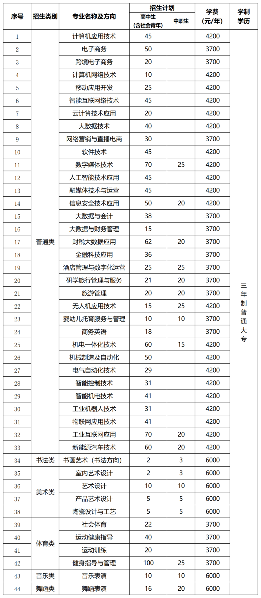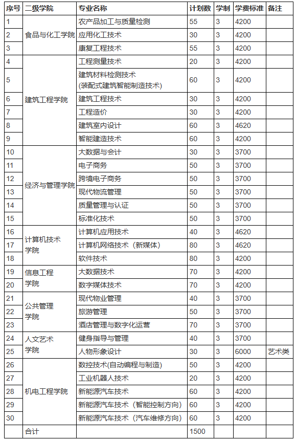 普通类及产业学院类专业招生计划