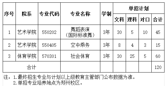 商丘校区招生计划中含有退役士兵单列计划30人、免试技能拔尖人才单列计划20人,学校招生计划可根据各类别考生报考情况按比例进行划分。最终各专业招生计划以上级招生管理部门公布为准。