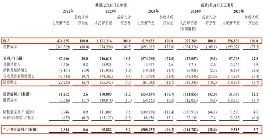 实际上,该行业所呈现出的一个显著特征还在于,半导体本来就很烧钱,多数企业短期亏损其实和高研发投入有关,但天域半导体却是个例外。从研发投入来看,报告期内(2022-2024年及2025年前5个月),该公司研发开支分别为0.29亿元、0.55亿元、0.61亿元及0.20亿元,虽然呈现逐年走高之势,但数值较低,所占总营收的比重并不高,意味着其研发投入对业绩的波动影响并不大。
