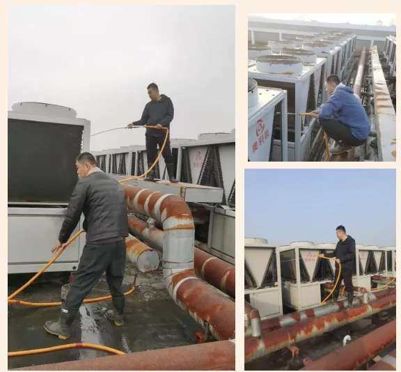 自10月起,总务处便组建专项检修小组,对全校中央空调的核心设备展开 “地毯式” 排查。团队逐一检查室外主机的压缩机、换热器,清理冷凝器灰尘与杂物;深入各教学楼、宿舍楼、办公楼,逐间调试室内风机盘管、检修送风管道,更换老化滤网与损坏阀门,确保每一台终端设备都能正常运转,从源头避免供暖不均、风力不足等问题。