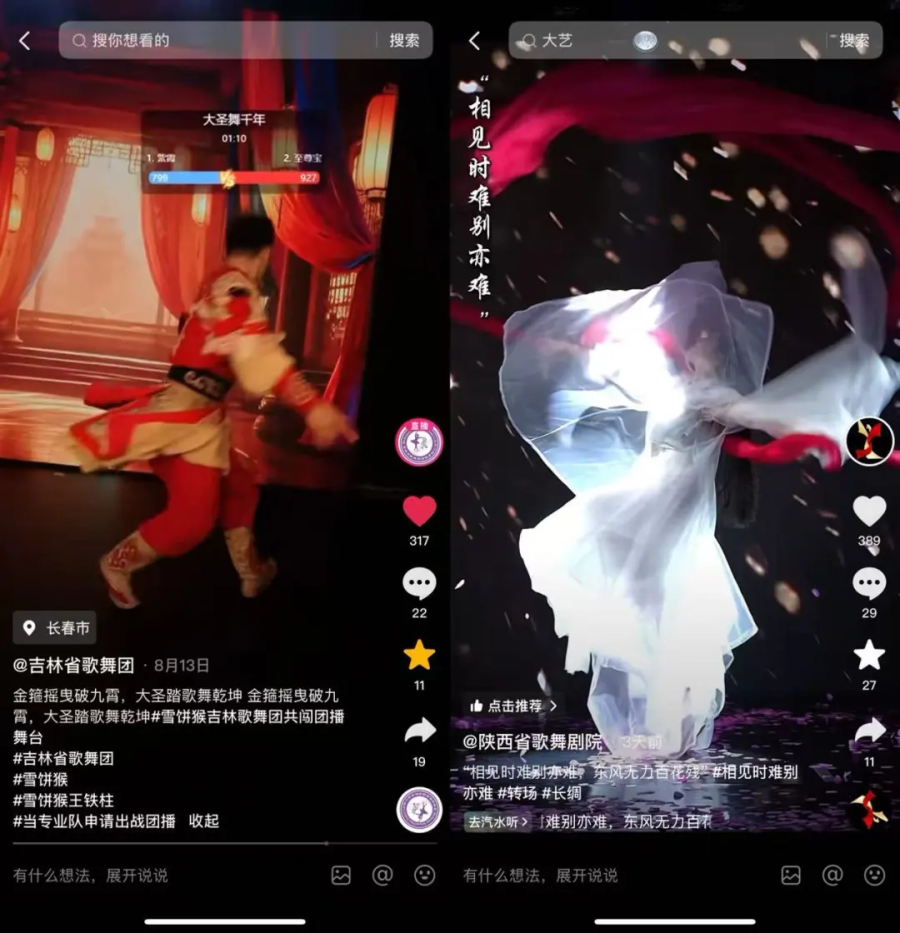 抖音直播相关负责人表示,针对生态外的一些团队来做团播,平台推出了面向专业舞蹈生的“爱播星途计划”和面向专业院团的“艺播计划”。对于优质内容,平台会给予流量扶持。“用户自己也会筛选优质内容,留不下任何互动数据的团自然会被市场淘汰。”
