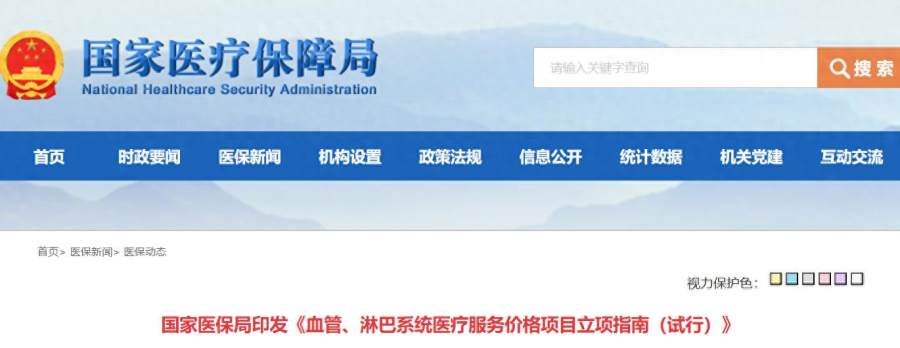 国家医保局印发《血管、淋巴系统医疗服务价格项目立项指南(试行)》
