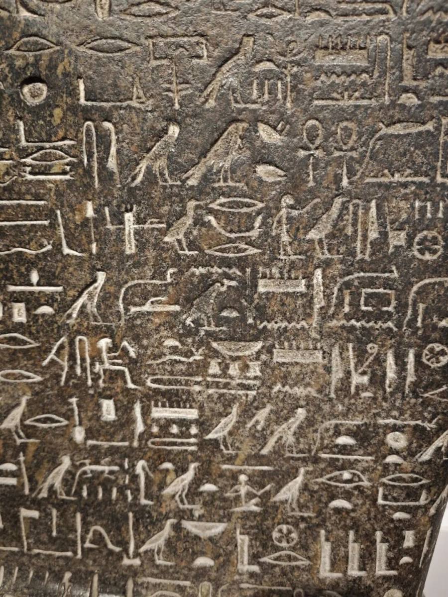 古埃及圣书字(又称圣书体)起源于公元前3000年左右,是古埃及第一王朝时期创造的成熟文字系统,主要用于宗教、祭祀和记录重大事件。由于古埃及人将文字视为神圣之物,因此称其为“圣书”。“圣书字”符号中大量出现与尼罗河、动植物相关的象形图案,如水波纹代表河流,鸟兽图案象征自然界中的动物,以至于“圣书字”被称为象形文字、图画文字;其实“圣书字”并不缺少表音符号。总体说来,“圣书字”更接近图象,每个符号通常直接描绘自然物体或具体事物,如太阳、鸟、蛇等。这种象形性使圣书字在视觉上具有极强的表现力和艺术性,一如现代人所谓的“简笔画”。“圣书字”多用于神庙墙壁、祭祀器物和坟墓石碑,记录宗教仪式和神灵崇拜的内容;其次用于记录税收、人口和粮食分配等行政事务,反映了古埃及社会的组织形式。圣书字的书写从左到右,也可以从右到左,甚至从上到下。具体方向取决于符号的朝向,例如人物或动物符号的头部朝向通常指示阅读方向。